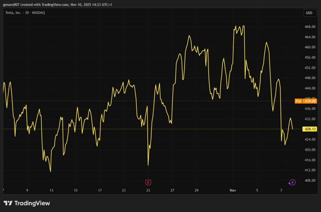 Die Entwicklung der Tesla-Aktie im letzten Monat