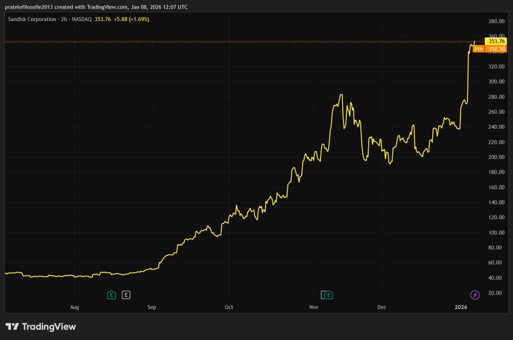 Entwicklung der SanDisk-Aktie in den letzten sechs Monaten.